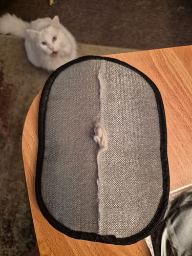 Denna bild är tagen efter jag använde handsken på soffan i ungefär 1 minut. Sjukt att den kan dra åt sig allt hår så snabbt.